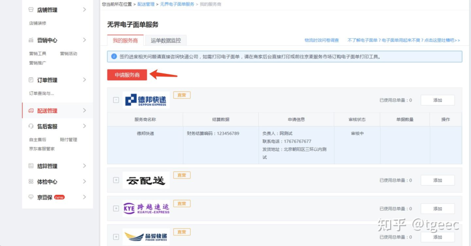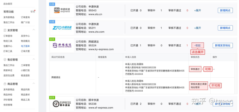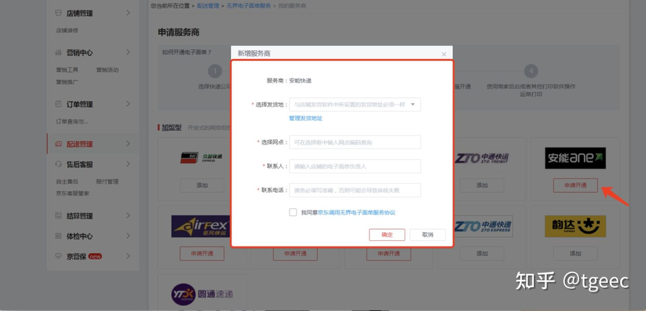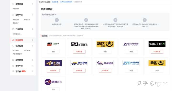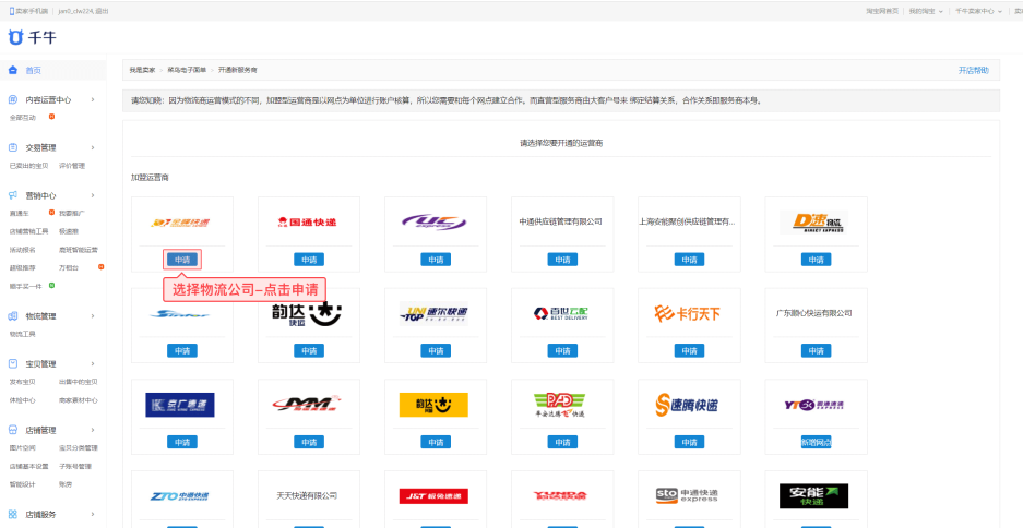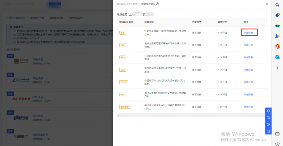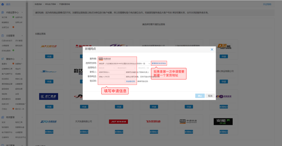 注:目前只有中通、圆通、极兔支持线上申请,其他快递公司需要线下申请