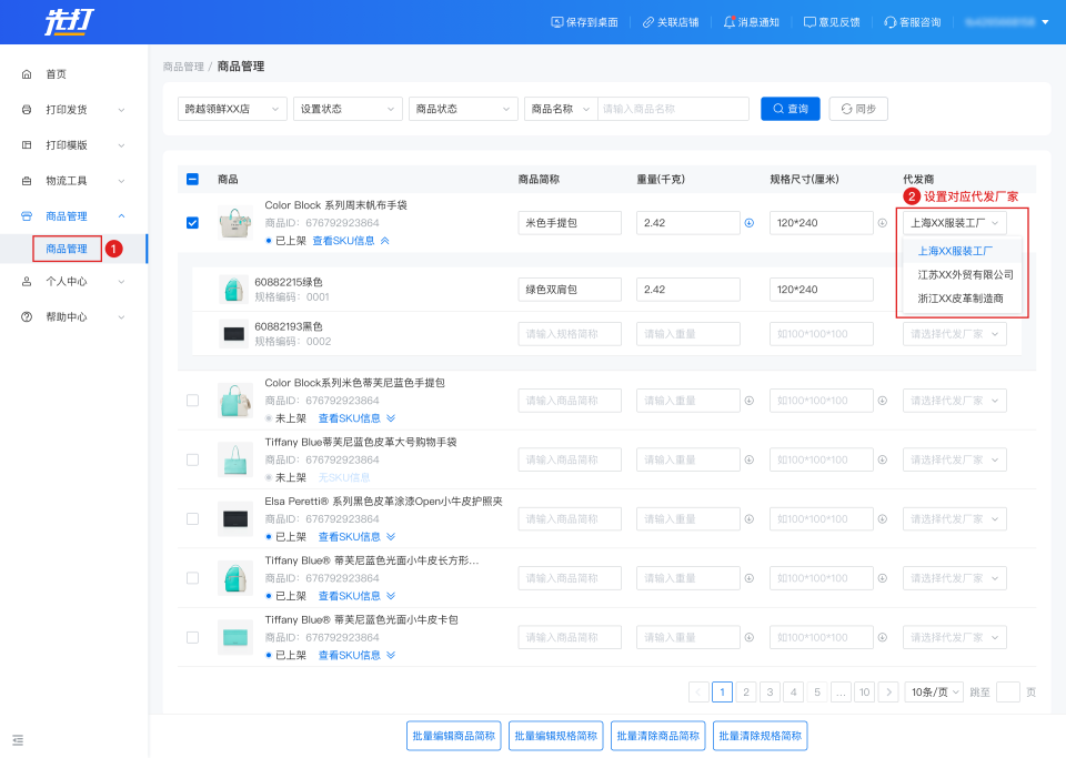 2️⃣ 进入商品管理 ➡️ 选择需要代发的商品 ➡️ 将其设置为对应的代发商即可。