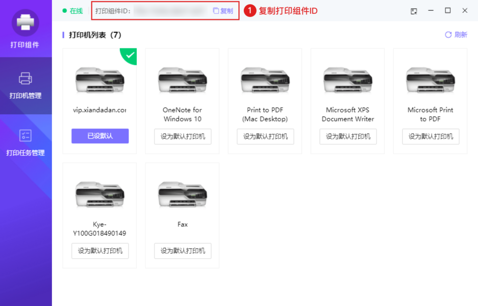 4️⃣ 打开跨越打印组件,设置默认打印机