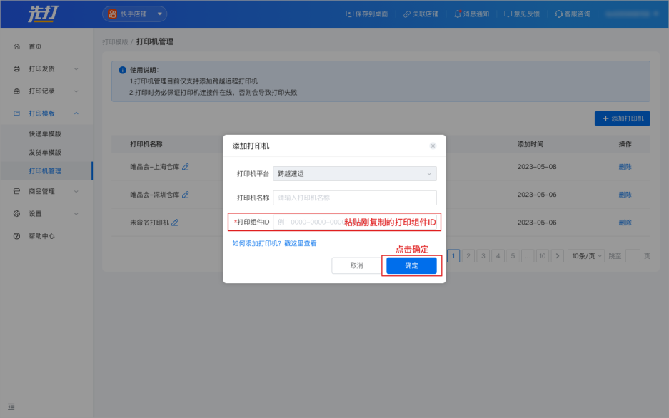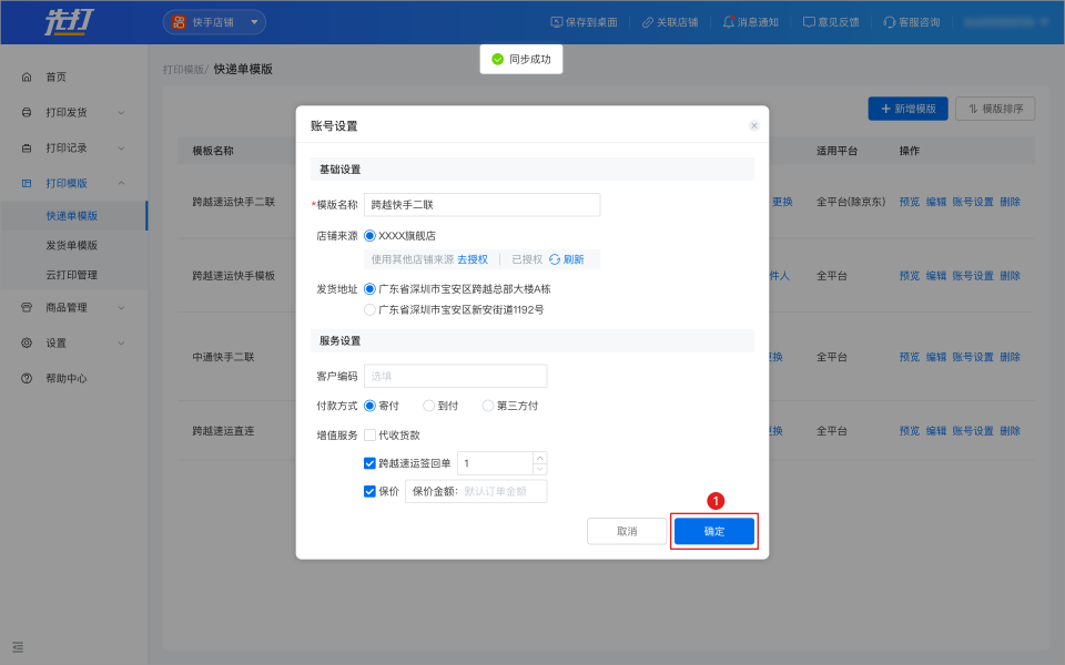 3️⃣ 刷新成功后,点击【确定】按钮,重新回到打印发货页面打印即可恢复正常