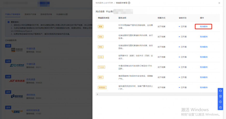 4️⃣ 已开通的服务也可以点击【取消服务】