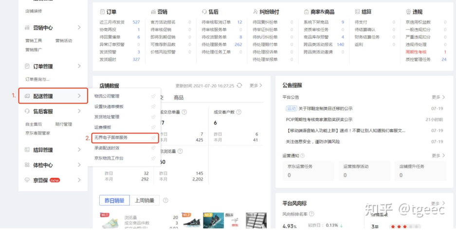 电子面单就像是快递的“身份证”。它是用不干胶热敏纸,以物流公司的规定打印输出纸质收派件信息的服务,在行业内也被称为热敏纸快递标签、经济型面单二维码面单等。 商家可在平台对应的卖家中心申请开通服务。